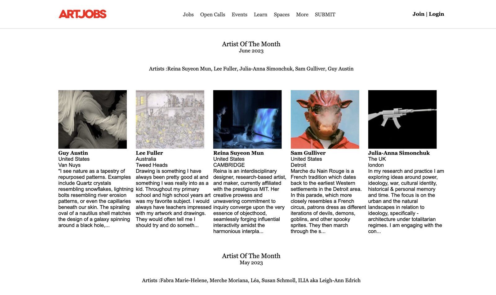 Art Jobs - Artist of the Month